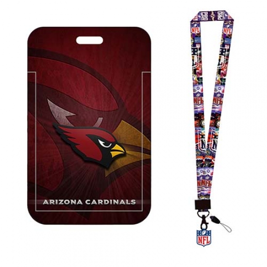 Arizona Cardinals -ID Stickers Badge Holder with Lanyard, Hard Plastic Key Card Work Badge Sleeve for Office,,