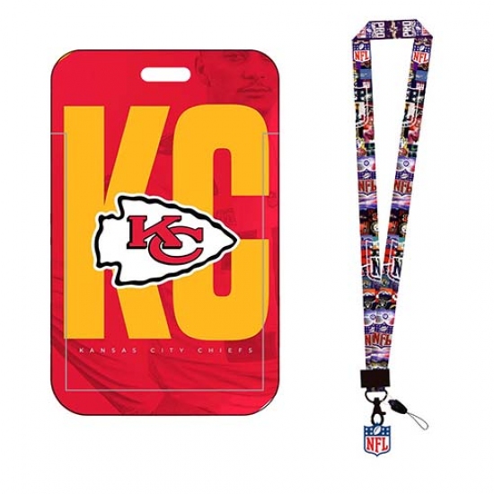>Kansas City Chiefs ID Stickers Badge Holder with Lanyard, Hard Plastic Key Card Work Badge Sleeve for Office, School, Factory, ID Credit Cards,