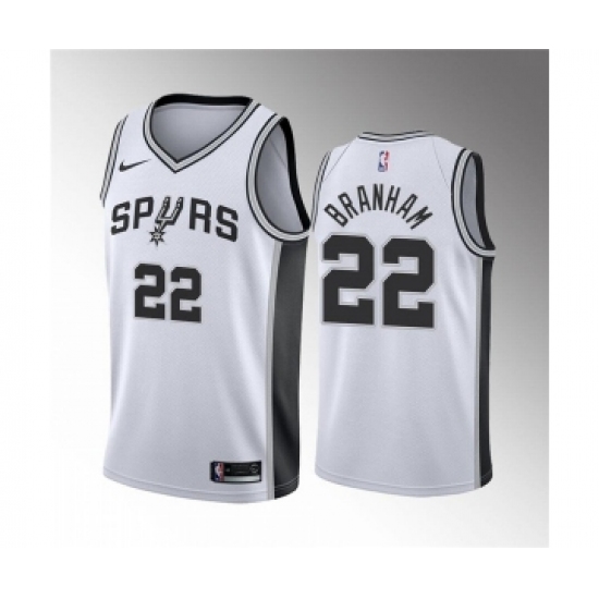 >Men' San Antonio Spurs #22 Malaki Branham White Association Edition Stitched Jersey