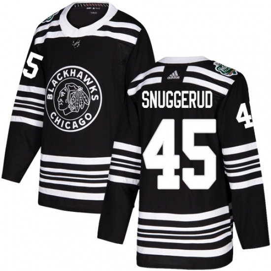 Men's Adidas Chicago Blackhawks #45 Luc Snuggerud Authentic Black 2019 Winter Classic NHL Jersey
