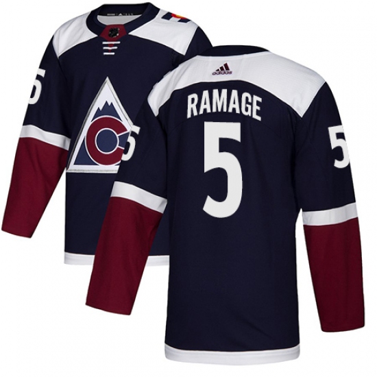 >Men's Adidas Colorado Avalanche #5 Rob Ramage Authentic Navy Blue Alternate NHL Jersey