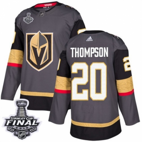 Men's Adidas Vegas Golden Knights #20 Paul Thompson Premier Gray Home 2018 Stanley Cup Final NHL Jersey