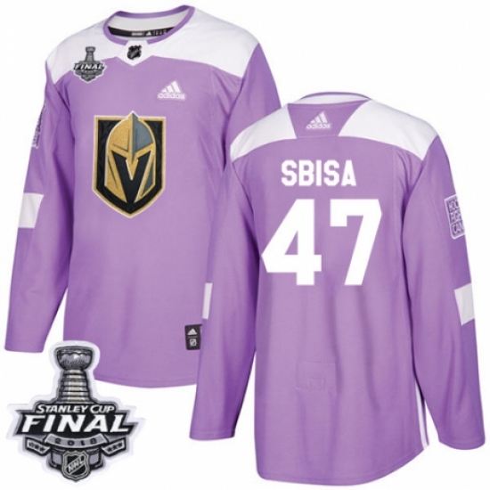 Men's Adidas Vegas Golden Knights #47 Luca Sbisa Authentic Purple Fights Cancer Practice 2018 Stanley Cup Final NHL Jersey