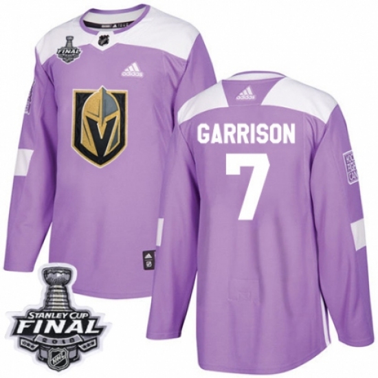 >Men's Adidas Vegas Golden Knights #7 Jason Garrison Authentic Purple Fights Cancer Practice 2018 Stanley Cup Final NHL Jersey