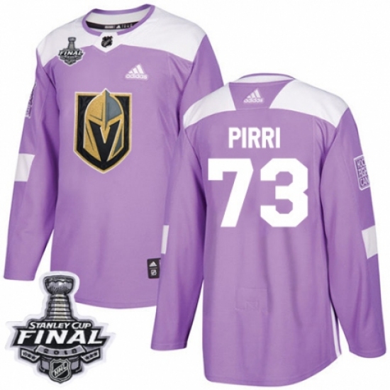 >Men's Adidas Vegas Golden Knights #73 Brandon Pirri Authentic Purple Fights Cancer Practice 2018 Stanley Cup Final NHL Jersey