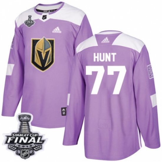 >Men's Adidas Vegas Golden Knights #77 Brad Hunt Authentic Purple Fights Cancer Practice 2018 Stanley Cup Final NHL Jersey