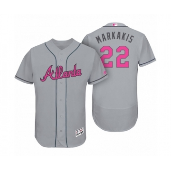 >Men's Atlanta Braves #22 Nick Markakis Mothers Day Gray Flex Base Jersey