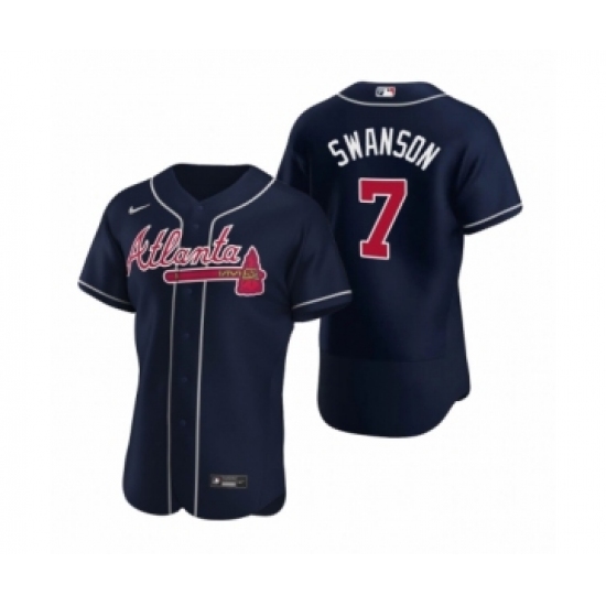 Men's Atlanta Braves #7 Dansby Swanson Nike Navy Authentic 2020 Alternate Jersey