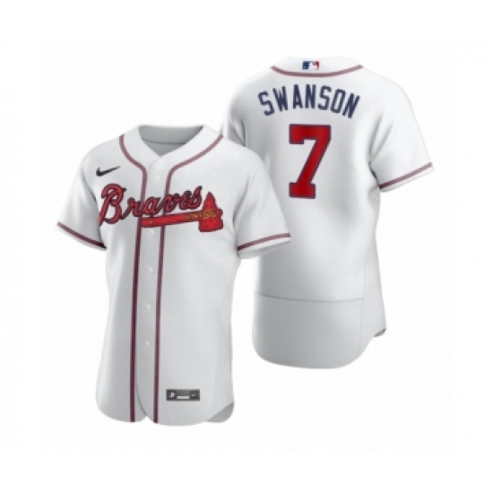 >Men's Atlanta Braves #7 Dansby Swanson Nike White 2020 Authentic Jersey
