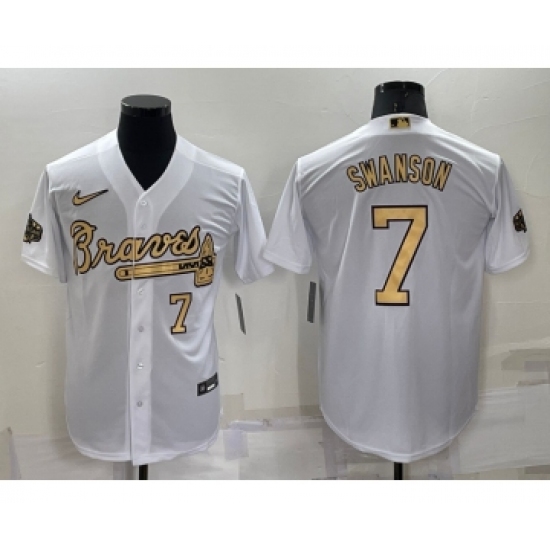 Men's Atlanta Braves #7 Dansby Swanson Number White 2022 All Star Stitched Cool Base Nike Jersey