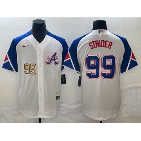 Men's Atlanta Braves #99 Spencer Strider Number White 2023 City Connect Cool Base Stitched Jersey