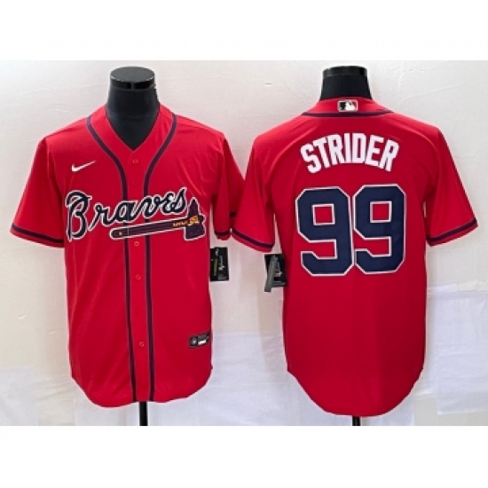Men's Atlanta Braves #99 Spencer Strider Red Cool Base Stitched Baseball Jersey