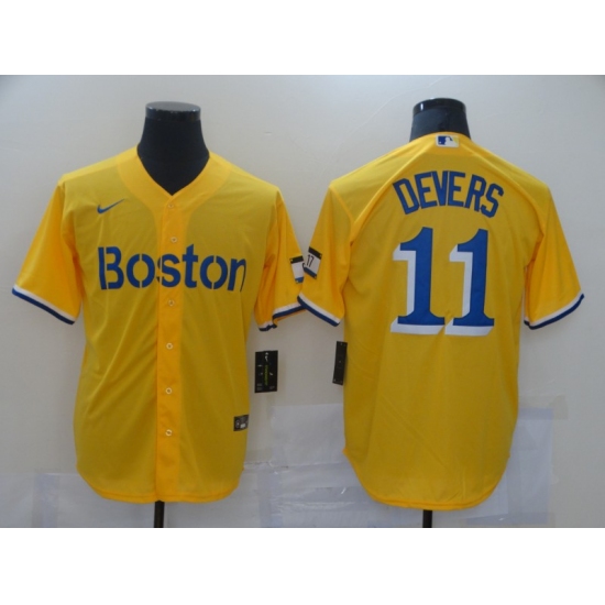 >Men's Boston Red Sox #11 Rafael Devers Nike Gold-Light Blue Jersey