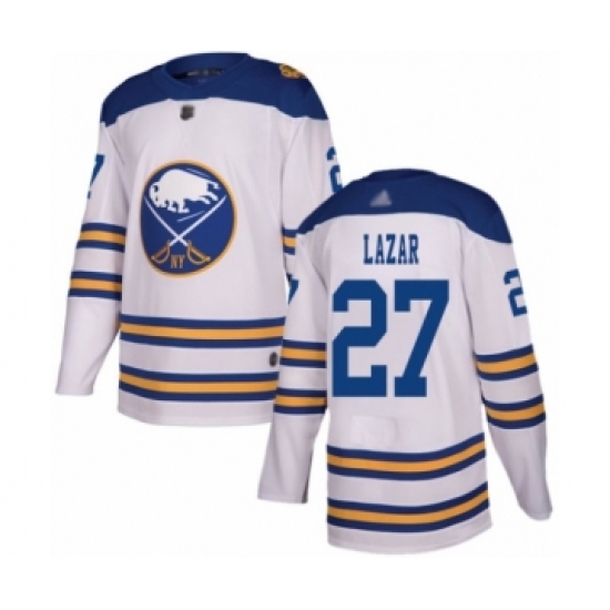 >Men's Buffalo Sabres #27 Curtis Lazar Authentic White 2018 Winter Classic Hockey Jersey