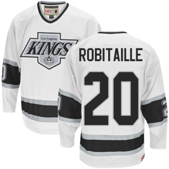 Men's CCM Los Angeles Kings #20 Luc Robitaille Authentic White Throwback NHL Jersey