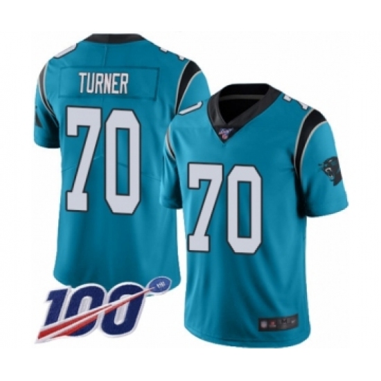 Men's Carolina Panthers #70 Trai Turner Limited Blue Rush Vapor Untouchable 100th Season Football Jersey