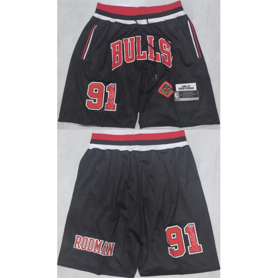 Men's Chicago Bulls #91 Dennis Rodman Black 2025 Shorts (Run Small)