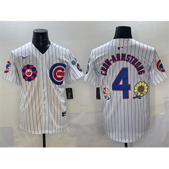 >Men's Chicago Cubs #4 Pete Crow-Armstrong White 2025 Tokyo Series Limited Stitched Baseball Jersey