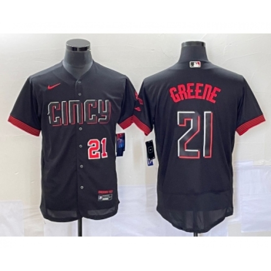 Men's Cincinnati Reds #21 Hunter Greene Number Black 2023 City Connect Flex Base Stitched Jersey