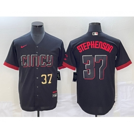Men's Cincinnati Reds #37 Tyler Stephenson Number Black 2023 City Connect Cool Base Stitched Jersey