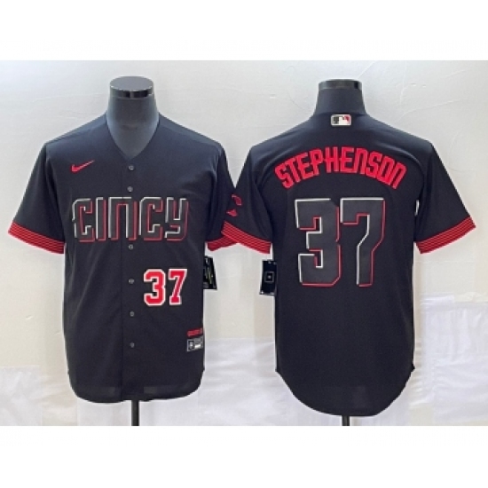 >Men's Cincinnati Reds #37 Tyler Stephenson Number Black 2023 City Connect Cool Base Stitched Jersey1