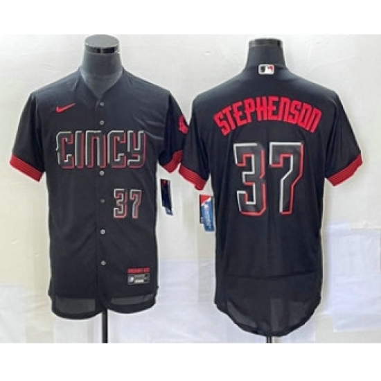 >Men's Cincinnati Reds #37 Tyler Stephenson Number Black 2023 City Connect Flex Base Stitched Jersey