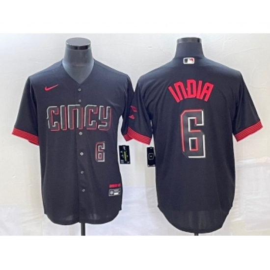 >Men's Cincinnati Reds #6 Jonathan India Number Black 2023 City Connect Stitched Jersey2