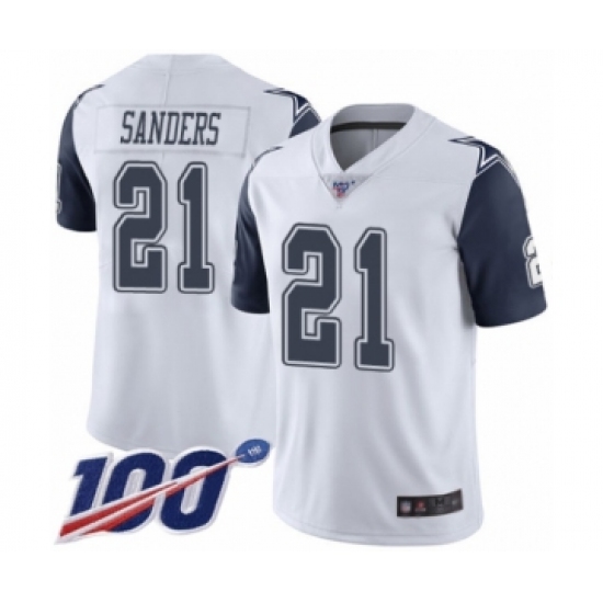 >Men's Dallas Cowboys #21 Deion Sanders Limited White Rush Vapor Untouchable 100th Season Football Jersey