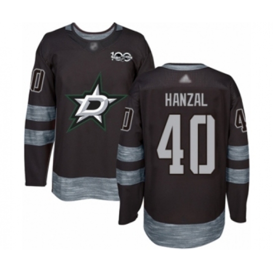>Men's Dallas Stars #40 Martin Hanzal Authentic Black 1917-2017 100th Anniversary Hockey Jersey