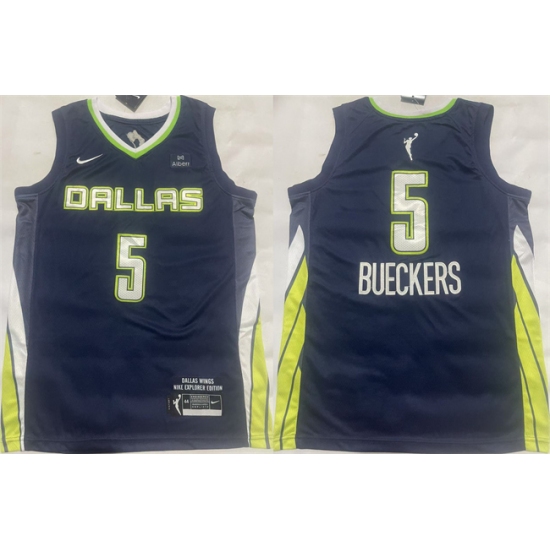 >Men's Dallas Wings #5 Paige Bueckers Navy Stitched Basketball Jerseys