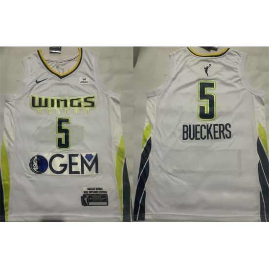 >Men's Dallas Wings #5 Paige Bueckers White 2025 Stitched Basketball Jersey
