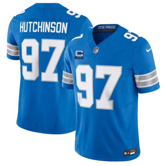 Men's Detroit Lions #97 Aidan Hutchinson Blue 2024 F.U.S.E. With 1-Star C Vapor Limited Stitched Jersey