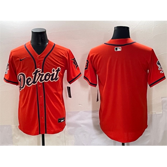 Men's Detroit Tigers Orange Team Big Logo Cool Base Stitched Baseball Jersey