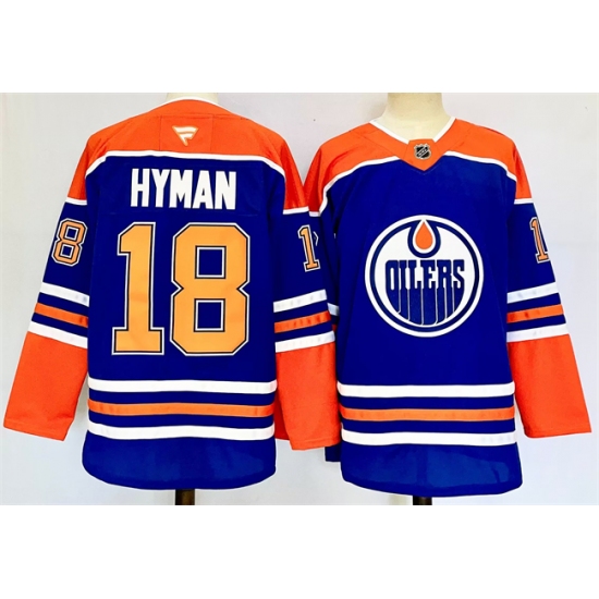 Men's Edmonton Oilers #18 Zach Hyman Royal 2024-25 Stitched Jersey