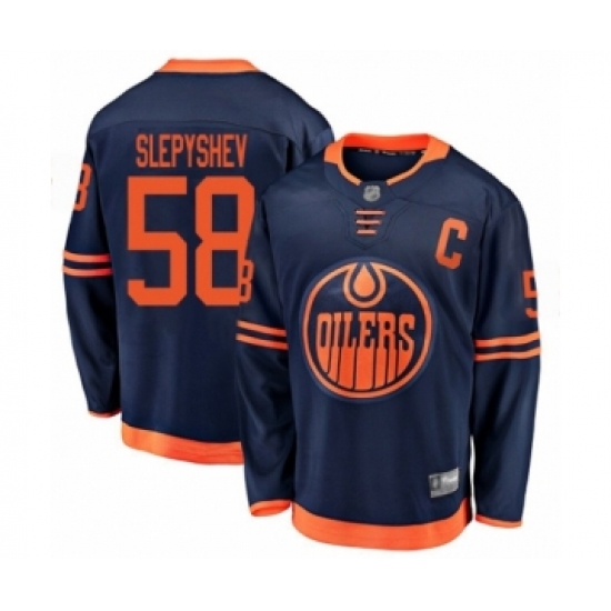 Men's Edmonton Oilers #58 Anton Slepyshev Authentic Navy Blue Alternate Fanatics Branded Breakaway Hockey Jersey