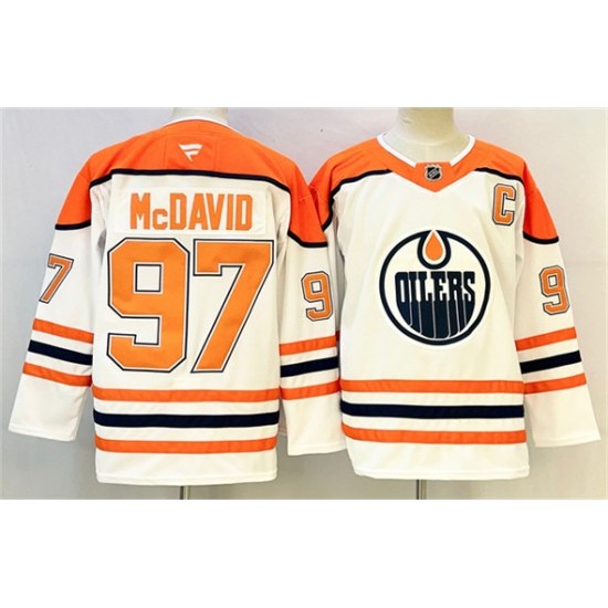 Men's Edmonton Oilers #97 Connor McDavid White Orange 2024-25 With C Heritage Classic Primegreen Stitched Jersey