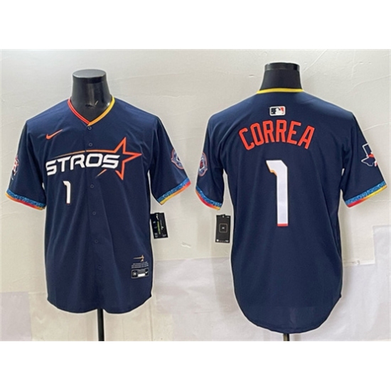 Men's Houston Astros #1 Carlos Correa Navy 2025 City Connect With Texas Limited Stitched Baseball Jersey