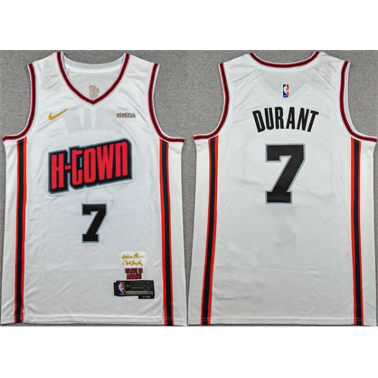 >Men's Houston Rockets #7 Kevin Durant White 2024-25 City Edition Stitched Jersey