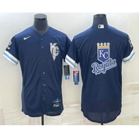 >Men's Kansas City Royals Big Logo 2022 Navy Blue City Connect Flex Base Stitched Jersey