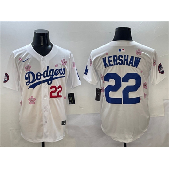 Men's Los Angeles Dodgers #22 Clayton Kershaw White 2025 Tokyo Series Limited Stitched Baseball Jersey