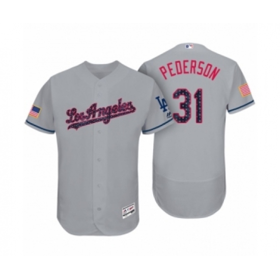Men's Los Angeles Dodgers #31 Joc Pederson Gray 2017 Independence Day Flex Base Jersey