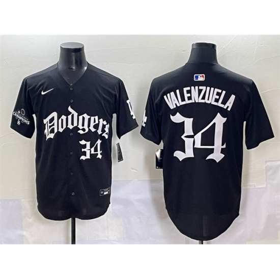 >Men's Los Angeles Dodgers #34 Fernando Valenzuela Black 2025 LA Gothic Style With 2024 World Series Champions Vapor Premier Limited Stitched Baseball Jerse