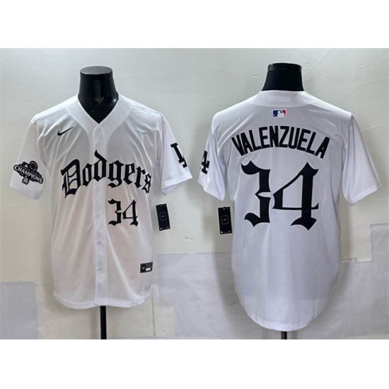 Men's Los Angeles Dodgers #34 Fernando Valenzuela White 2025 LA Gothic Style With 2024 World Series Champions Vapor Premier Limited Stitched Baseball Jerse