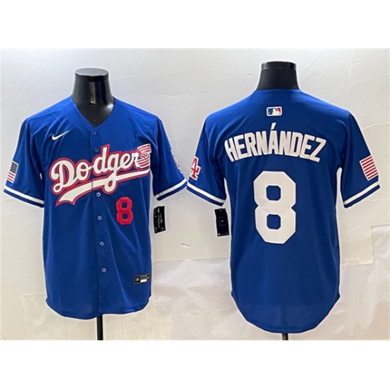 >Men's Los Angeles Dodgers #8 Enrique Hernández Royal With American Flag Limited Stitched Baseball Jersey