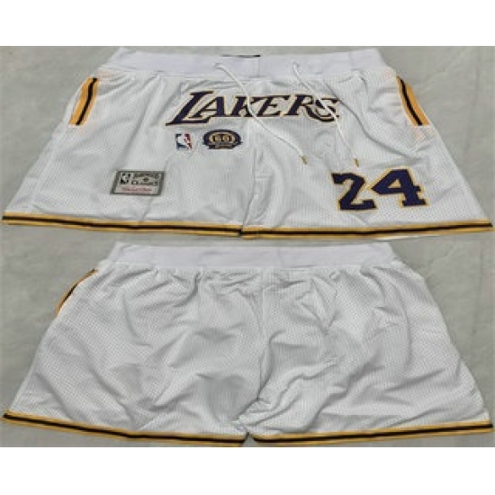 >Men's Los Angeles Lakers #24 Kobe Bryant White 2025 Shorts