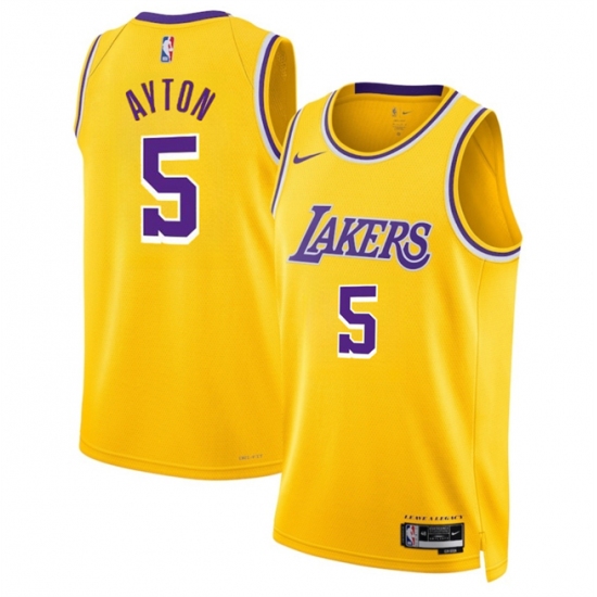 Men's Los Angeles Lakers #5 Deandre Ayton Yellow Icon Edition Stitched Basketball Jersey