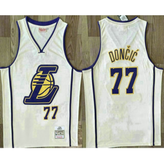 Men's Los Angeles Lakers #77 Luka Doncic Cream Throwback Swingman Jersey
