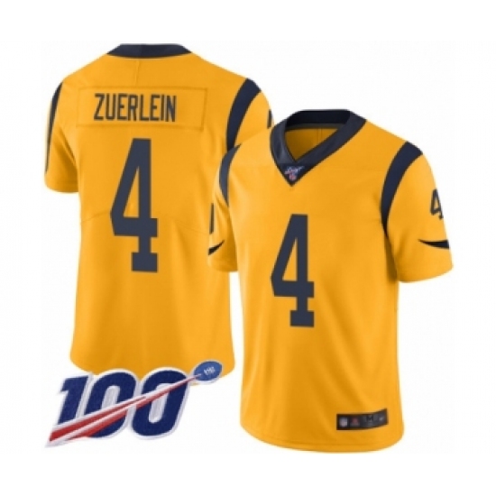 >Men's Los Angeles Rams #4 Greg Zuerlein Limited Gold Rush Vapor Untouchable 100th Season Football Jersey