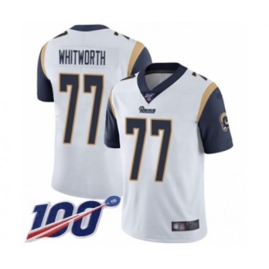 >Men's Los Angeles Rams #77 Andrew Whitworth White Vapor Untouchable Limited Player 100th Season Football Jersey