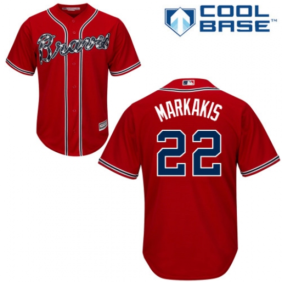Home>MLB>Atlanta Braves>Nick Markakis>Men's Majestic Atlanta Braves #22 Nick Markakis Replica Red Alternate Cool Base MLB Jersey